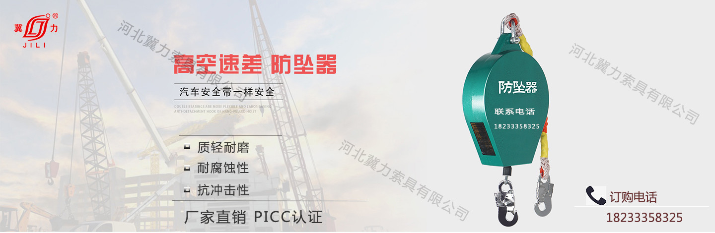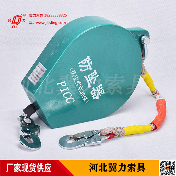 TXS-30米(mi)速差防墜器 產品名稱:防墜器 生產廠家:河北冀力索具有限公司 產品總零件:上掛鉤、客體、鋼帶、鋼絲繩、尼龍繩、棘輪、棘爪、下掛鉤。 產品用途:保護人生安全,防墜落。 防墜器...